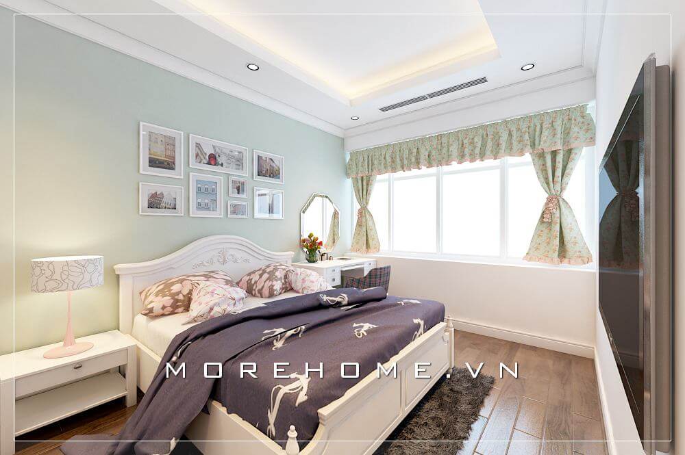Thiết kế nội thất phòng ngủ Master đẹp với gam màu trắng chủ đạo đem đến cho căn phòng sự nhẹ nhàng, trẻ trung và tràn ngập sức sống tươi mới