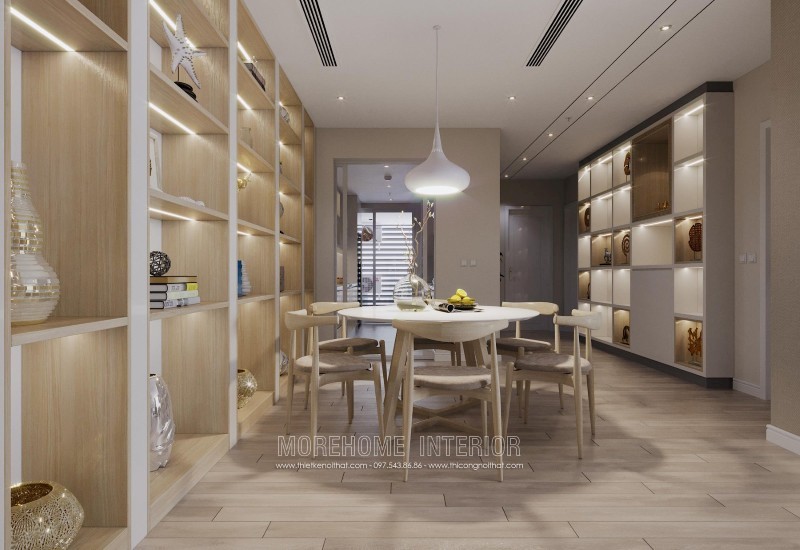 Nội thất phòng ăn chung cư hiện đại và tiện nghi với chất liệu gỗ công nghiệp