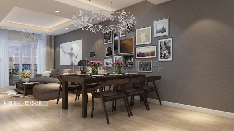Nội thất phòng ăn chung cư cao cấp được lựa chọn theo lối thiết kế hiện đại
