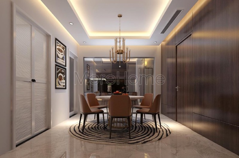 Nội thất phòng ăn chung cư được thiết kế đơn giản với tone màu nâu ấm áp mang đến sự gần gũi và thân thiện