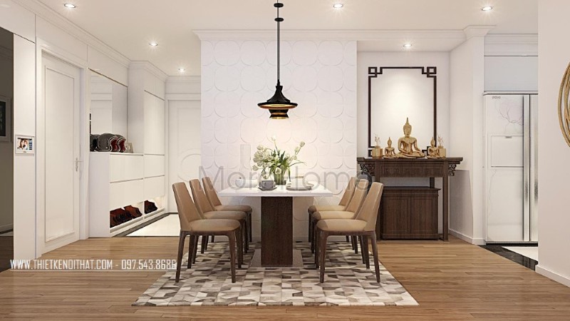 Bữa ăn ngon luôn là mong muốn của mọi gia đình, do vậy phòng ăn là vô cùng quan trọng cho mái ấm hạnh phúc của gia đình mình. Lựa chọn thiết kế thoải mái, thư giản và ấm cúng kích thích người nội trợ biến tấu ra những món ăn ngon cho gia đình của mình. Với nhiều năm kinh nghiệm trong lĩnh vực thiết kế thi công và sản xuất nội thất sẽ tạo ra những kiệt tác thiết kế hoàn hảo nhất. Nếu bạn đang còn băn khoăn về thiết kế phòng ăn trong căn hộ của mình, thì hãy liên hệ ngay 0975438686 để có không gian như trong mơ nhé!