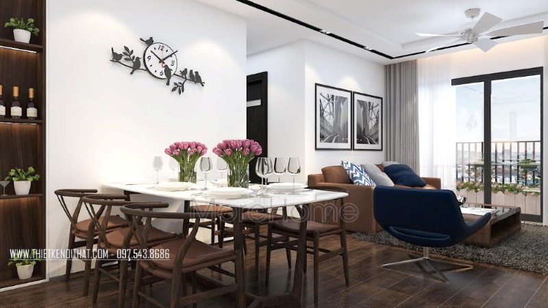 Phòng ăn được thiết kế liên kết trực tiếp với nội thất phòng khách tạo sự thông thoáng cho căn chung cư