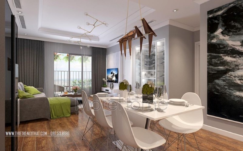 Thiết kế nội thất phòng ăn chung cư hiện đại với cách sắp xếp hợp lí, tiện nghi