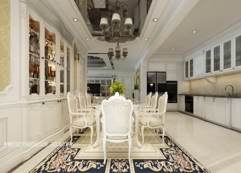 Nội thất phòng ăn chung cư sang trọng và tinh tế với phong cách thiết kế tân cổ điển