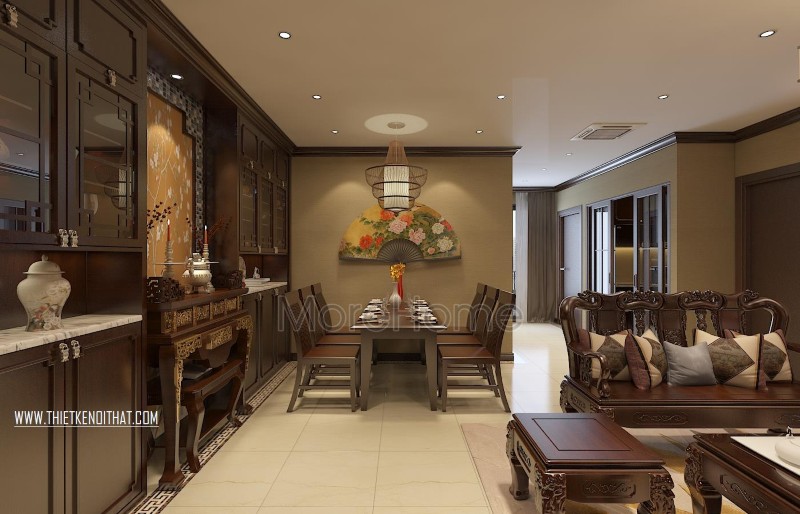 Mẫu thiết kế nội thất phòng ăn chung cư phong cách ăn tân cổ điển