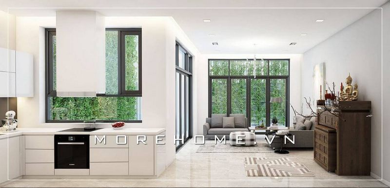 Mẫu thiết kế nội thất biệt thự hiện đại trẻ trung với gam màu trắng chủ đạo giúp không gian ngôi nhà thoáng mát, rộng rãi