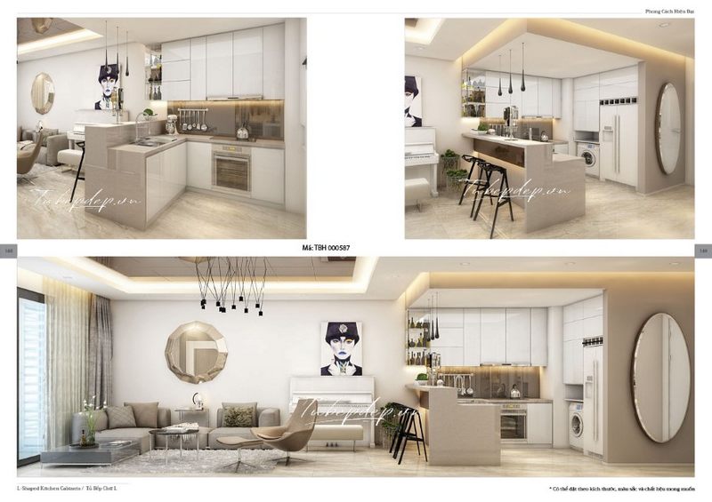 Thiết kế nội thất bếp chung cư hiện đại, kệ tủ bếp đẹp thiết kế hợp lý và tiện lợi.