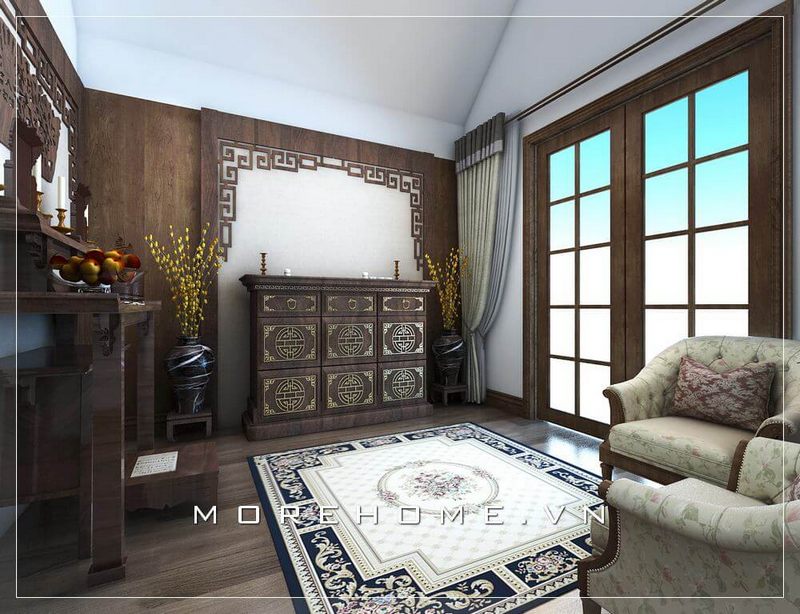 Ví dụ thực tế về không gian nhỏ gọn tận dụng tủ bàn thờ