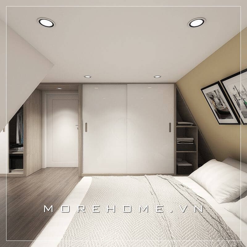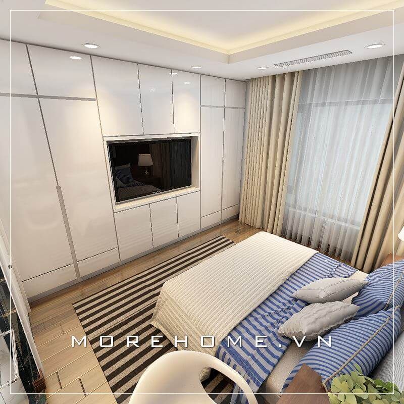 Tủ quần áo gỗ công nghiệp có màu trắng nhẹ nhàng sẽ làm cho phòng ngủ trở nên rộng rãi hơn với hiệu ứng đẹp mắt.