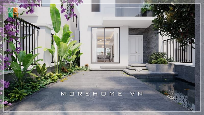 Thiết kế kiến trúc ngoại thất biệt thự cao cấp, sang trọng phong cách hiện đại, với sự bố trí hợp lý của cây xanh và hồ nước phong thủy, giúp đem lại tài vận tốt cho gia chủ