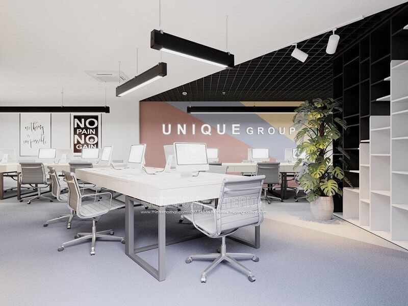 Thay vì quá nhiều chi tiết phức tạp, việc tối giản màu sắc trong thiết kế nội thất văn phòng không chỉ mang lại cảm giác thông thoáng mà còn tạo điểm nhấn cho không gian. Sự đơn giản của màu sắc bổ sung cho không gian làm việc tính linh hoạt và dễ dàng tinh chỉnh theo yêu cầu công việc khác nhau. Đây chính là xu hướng thu hút rất nhiều doanh nghiệp theo đuổi để tạo ra các không gian làm việc hiện đại và sáng tạo.