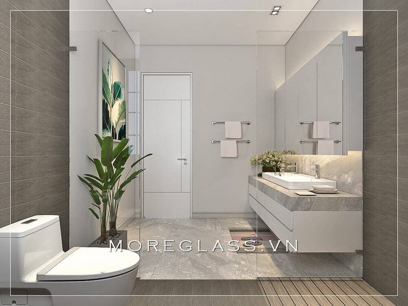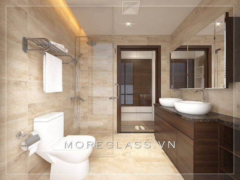 Mẫu phòng tắm hiện đại có kính đẹp, được kết hợp với thiết bị vệ sinh cao cấp và tiện nghi, đang được ưa chuộng nhiều nhất hiện nay.