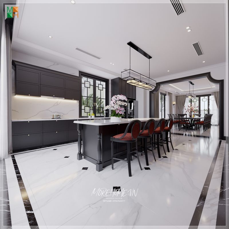 Thiết kế phòng bếp cho biệt thự theo phong cách cổ điển với sự sang trọng.