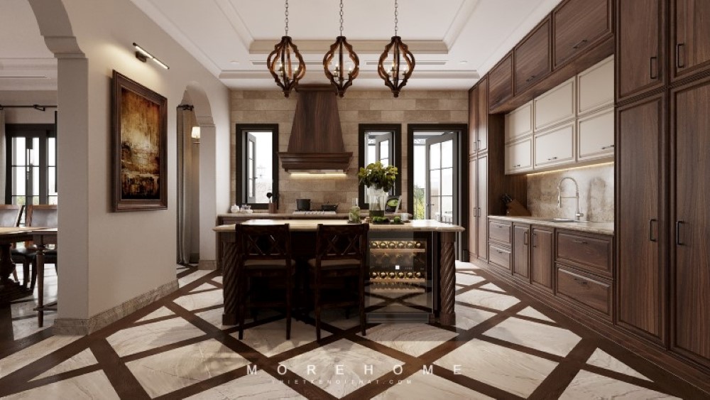 Nội thất trang trí phòng bếp trái tim của mọi nhà được thiết kế với phong cách địa trung hải, màu sắc hài hòa và chất liệu mộc mạc cùng vẻ đẹp ấn tượng, giúp tạo nên những món ăn thơm ngon nhất để dành cho người thân yêu.